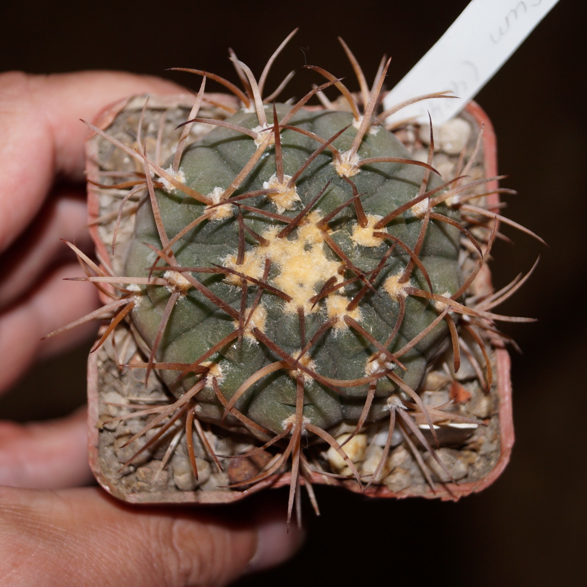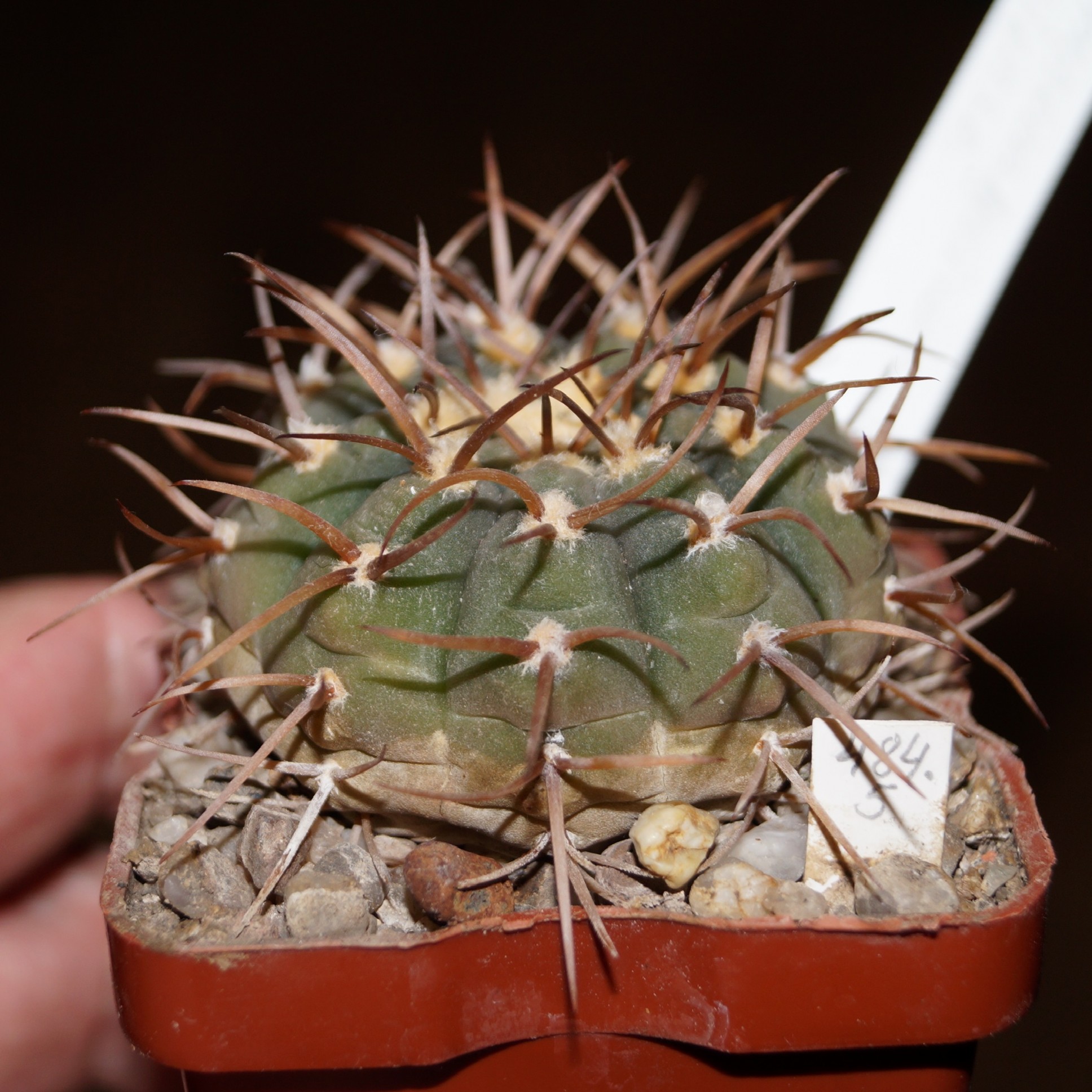 Кактус Gymnocalycium riojense - красивоцветущий кактус c мощными колючками.